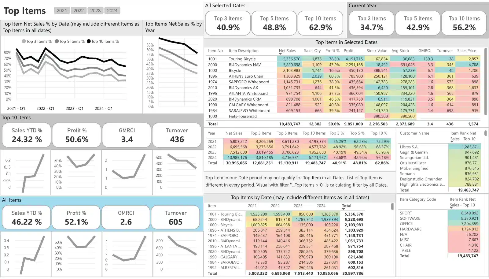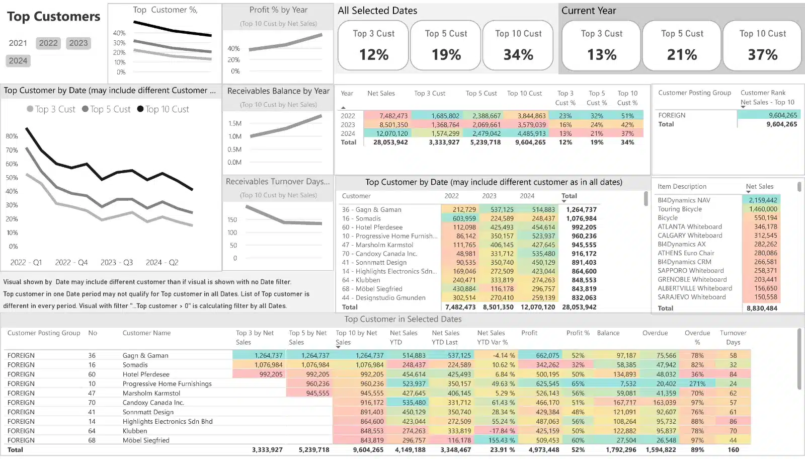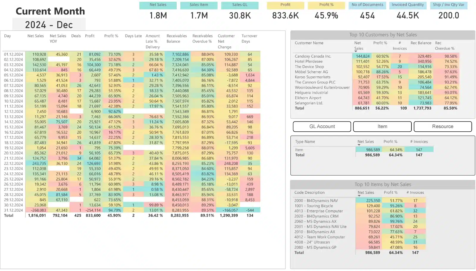 4. Power BI & Excel Reports: Connect your Power BI and Excel dashboards to the BI4Dynamics Data Warehouse. Over 150 pre-defined Power BI dashboards are included.