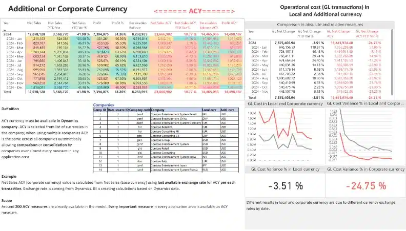 • Can BI4Dynamics handle data from multiple companies and different currencies?